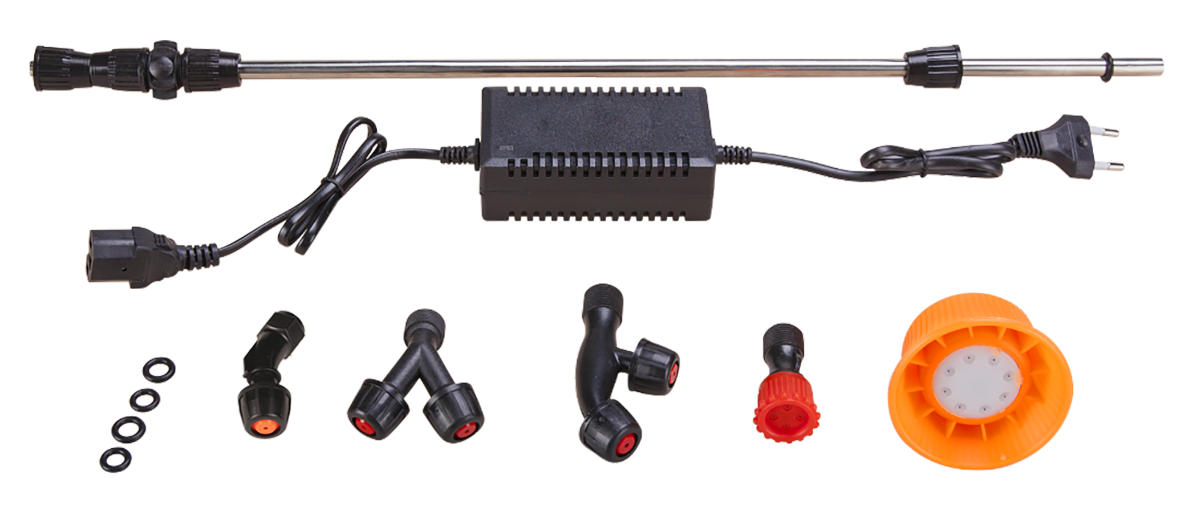 - Spraying liquid fertilizers and solutions for pest control in vegetable gardens, orchards, agricultural areas, household.