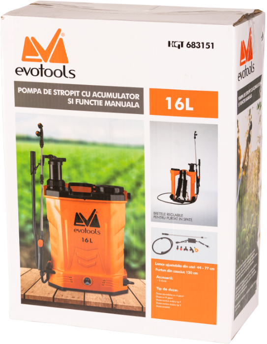 Battery sprayer with manual function PP EvoTools® 16 liters is a robust and safe device intended for: