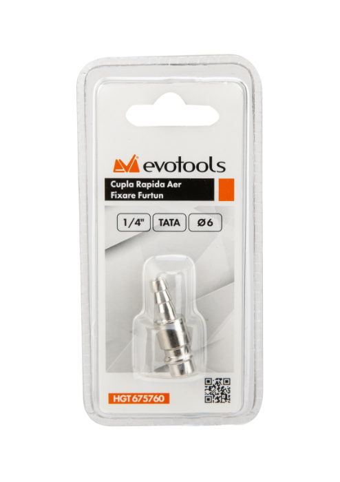 'Quick Coupling Air Male 1/4 Hose Fixing' is a component of the compressed-air supply system. This coupling is designed to allow a fast and secure connection between a hose and a compressed-air source or another device. It has a cylindrical shape with a quick connect/disconnect mechanism. The specific size 1/4 inch refers to the diameter or the thread/connection size that the coupling fits. In this case, it fits a connector or a compressed-air source that has a thread with a diameter of 1/4 inch (approximately 6,35 mm). This coupling is designed to facilitate the quick connection of a hose to a compressed-air source or another device. It is a useful accessory for pneumatic tools, allowing easy connection and disconnection of tools from the air hose.